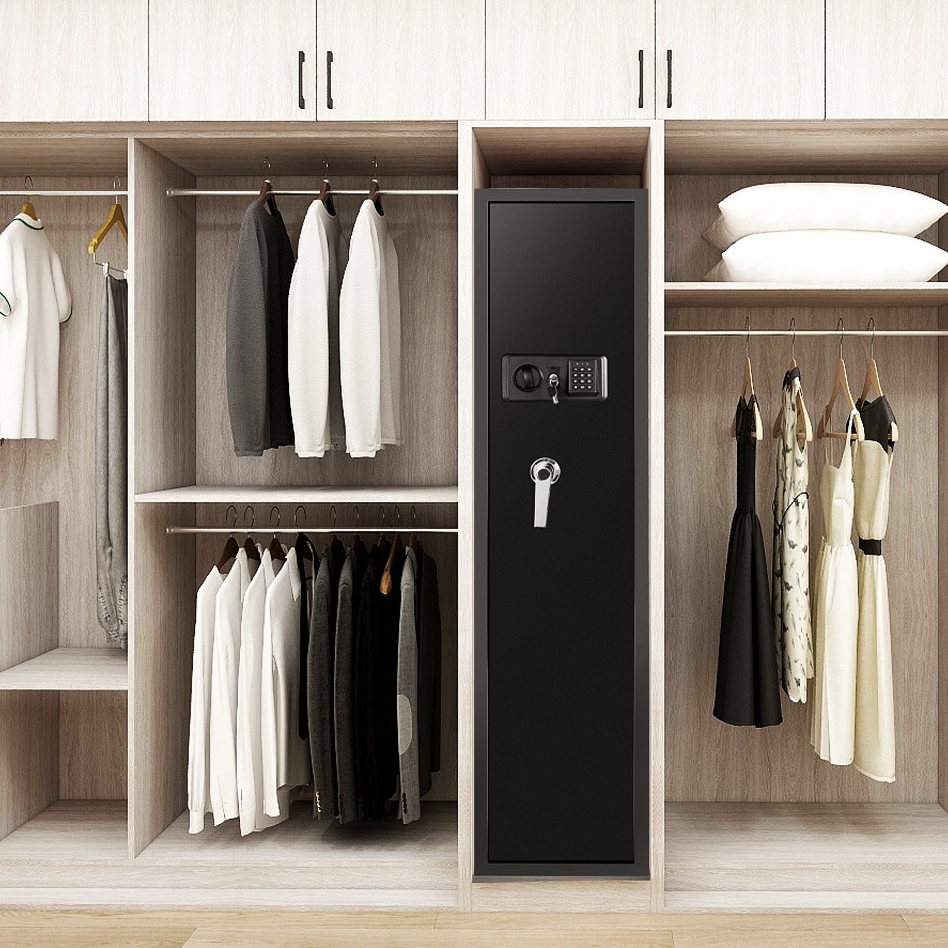 【MAXIMUM SECURITY, Silent Mode and Alarm】The safe is Tamper-resistant and crafted with steel, in high strength and solid structure. The 1.2" thick door features five 5/8" in diameter locking steel deadbolts system for additional security. The electronic keypad and 5 steel, live-action locking bolts safeguard your items. Smart technology secures firearms away from kids, and deters theft. Not like other safe, you can turn off the sound and the safe will alarm if wrong code for 3 times.