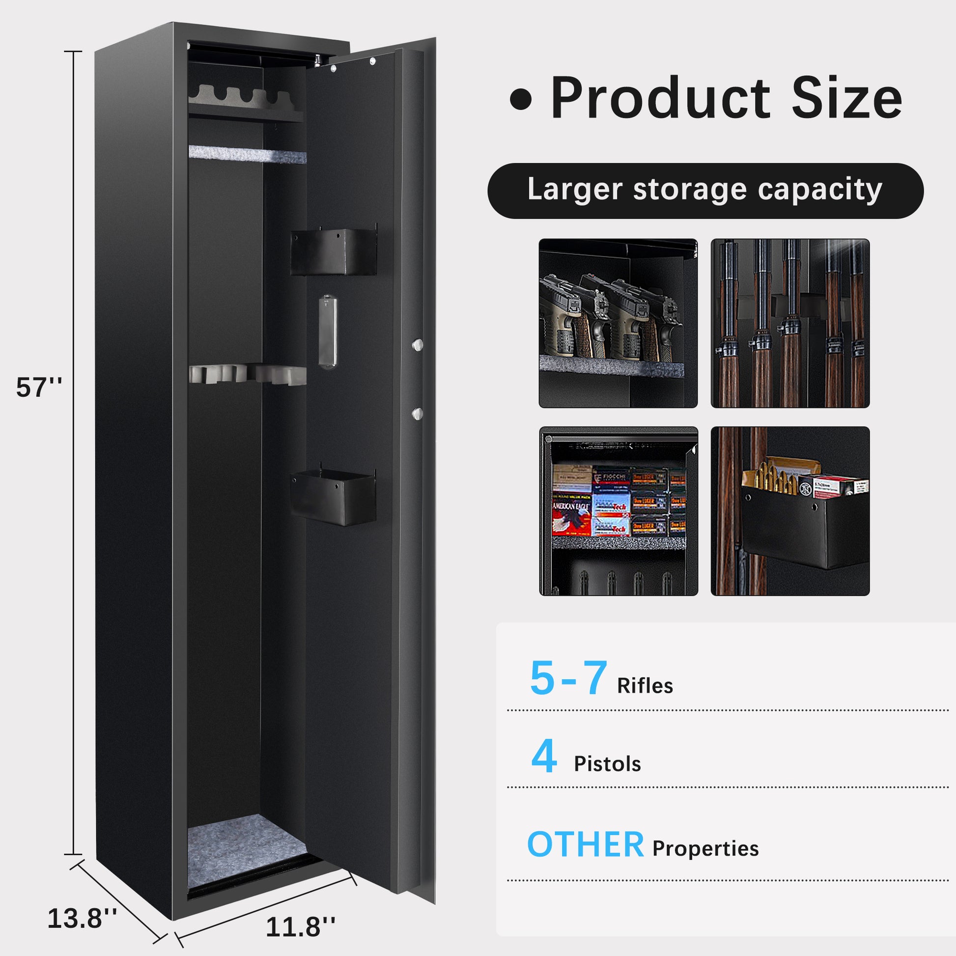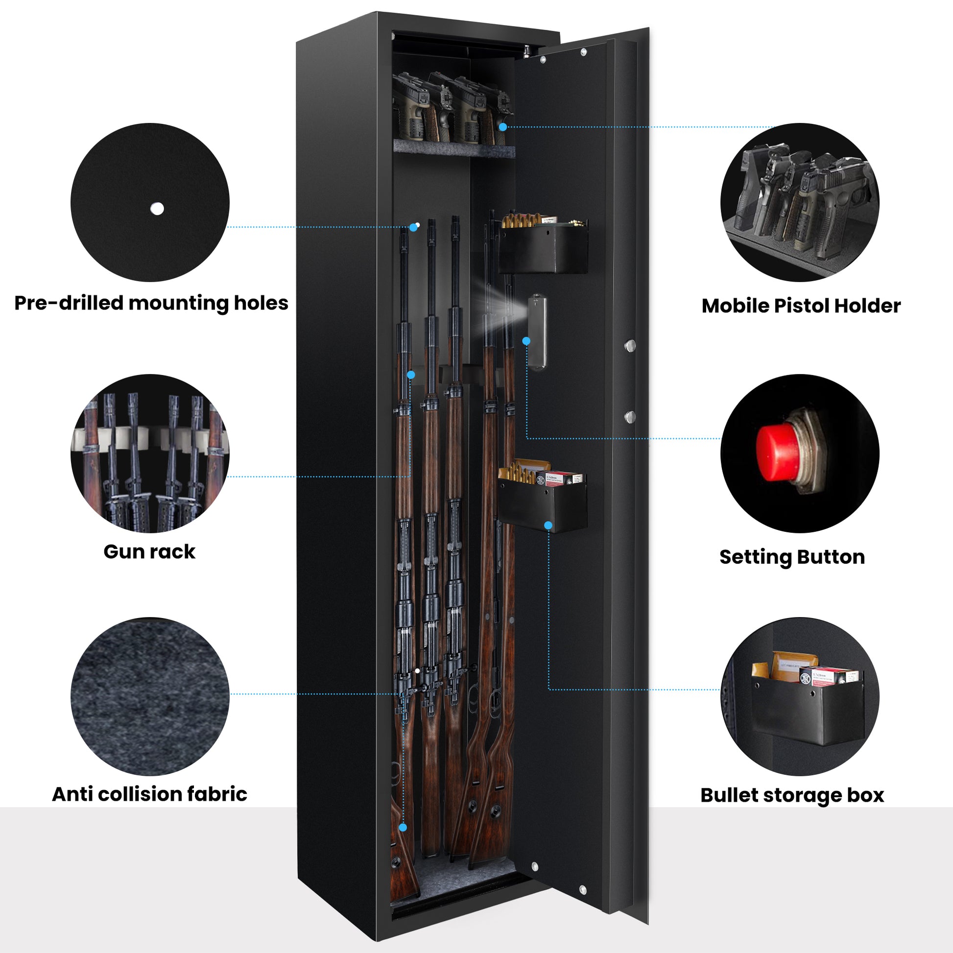 Sulives 5-7 Gun Safes for Rifle Shotgun and Pistols with Password Locking,Quick Access Gun Security Cabinet with Removable Shelf, Thickened Design Gun Safe with Pistol Pockets and Bullet Rack